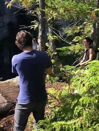 We were on site filming a TV show with Slacklife BC , and when we had a little midday break, Hannah and I snuck out to go for a quick base jump. I was excited to show her all of the places on the island that she never got to jump before.